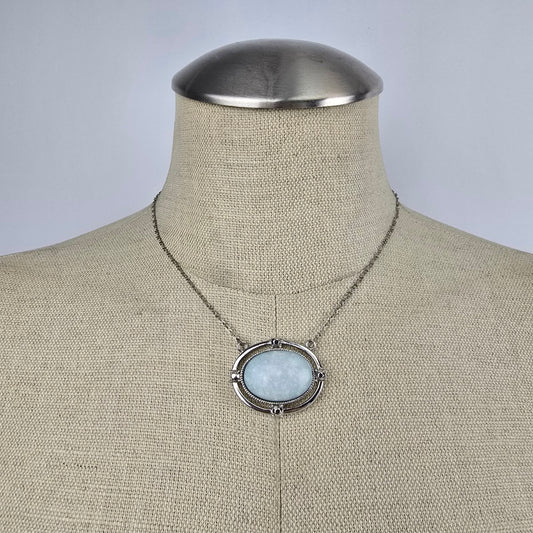 Silver Tone Blue Stone Pendant Necklace & Earrings