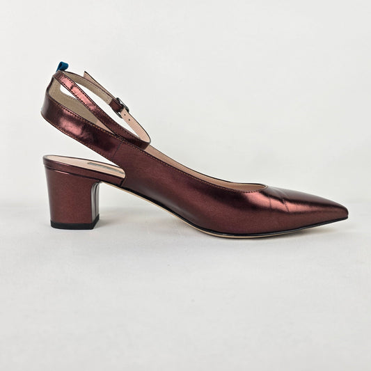 SJP Bronze Leather Pointed Toe Slink Back Low Heel Shoes Size 7