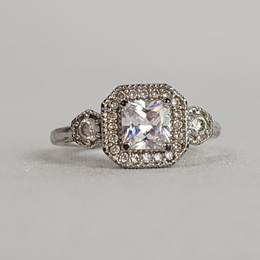 Stella & Dot Deco Silver Tone Cocktail Ring Size 9