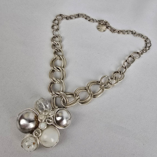 Sterling Glass Wire Beaded Statement Pendant Chain Necklace