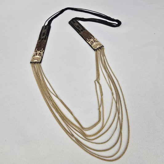 Stella & Dot Jasper Ombré Black & Gold Beaded Chain Necklace