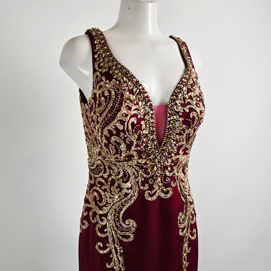 Splash Marsalla & Gold Ebroidered Beaded Eventwear Gown Size 14