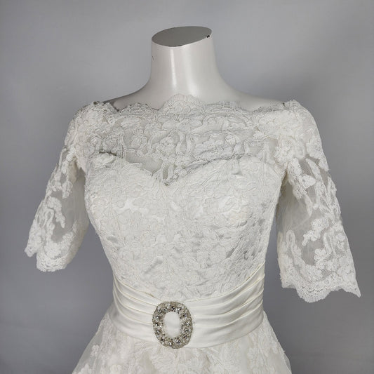 Symphony Of Venus White Of The Shoulder Midi Wedding Gown Size S