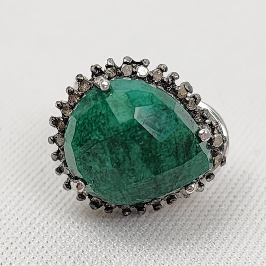 Sterling Silver Green Natural Faceted Stone Stud Earrings