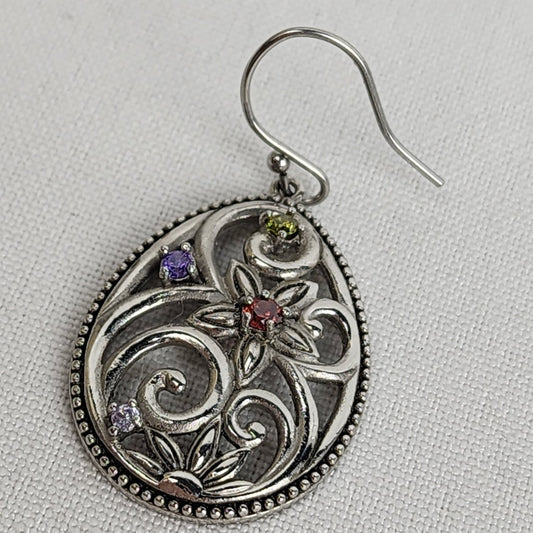 Sterling Silver Floral Drop Earrings