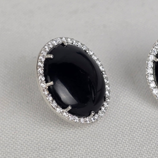 T 925 Black Stone Crystal Stud Earrings