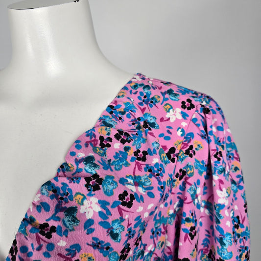 Vero Moda Pink & Blue Floral Ruffle Blouse Top Size M