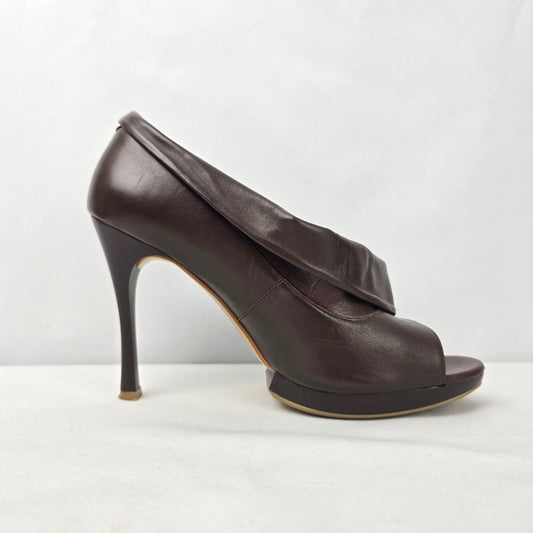 Velika Brown Leather Peep Toe Heeled Shoes Size 7