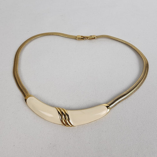 Vintage 80 Bergdorf Goodman Cream Enamel Gold Tone Collar Necklace