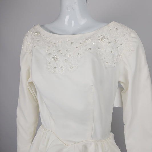 Vintage 60s White Beaded Lace Skirt Wedding Gown Size XS