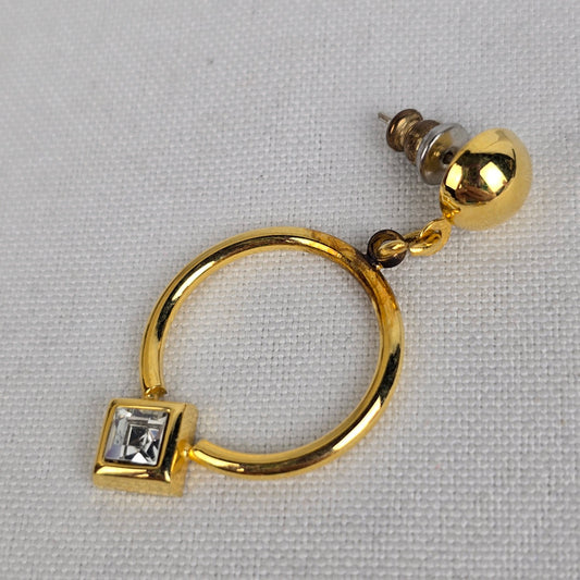 Vintage 80s Gold Tone Crystal Drop Earrings