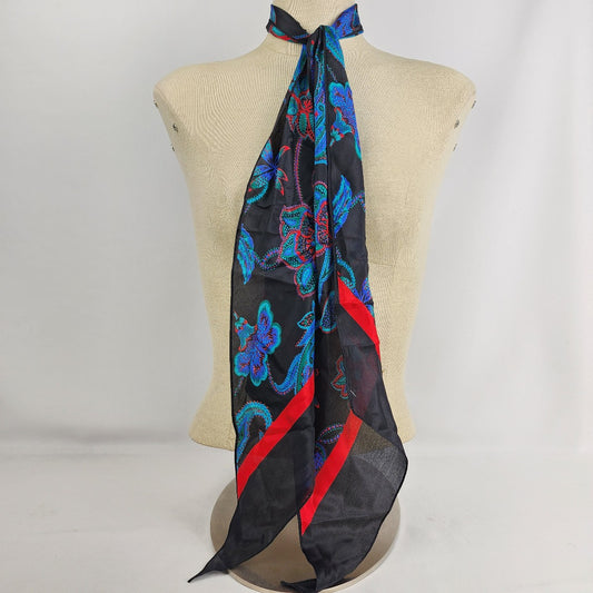 Vintage Black & Red Flower Print Scarf