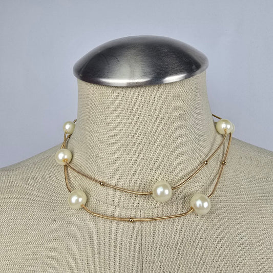 Vintage Avon Gold Tone Faux Pearl Chain Necklace