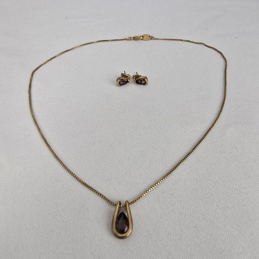 Vintage Avon Gold Tone Purple Faceted Stone Delicate Necklace & Earrings