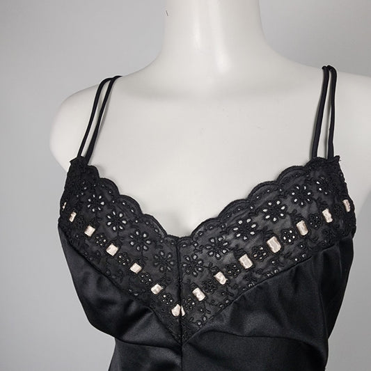 Vintage Black Satin Lace Overlay Long Sleeve Gown Size S
