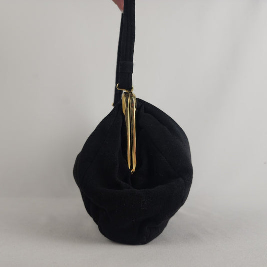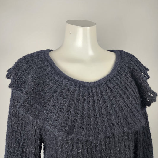 Vintage Black Knit Ruffle Neck Sweater Size S/M