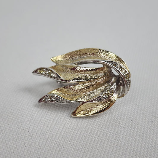 Vintage Bronze Tone AB Crystal Brooch & Clip On Earring Set