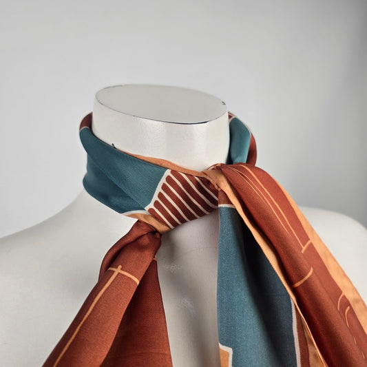Vintage Brown Handmade Neck Tie Blouse Size S/M