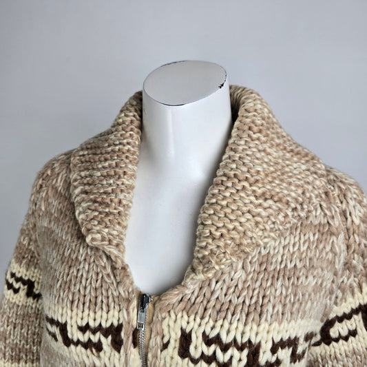 Vintage Brown Cowichan Knit Sweater Jacket Size XL