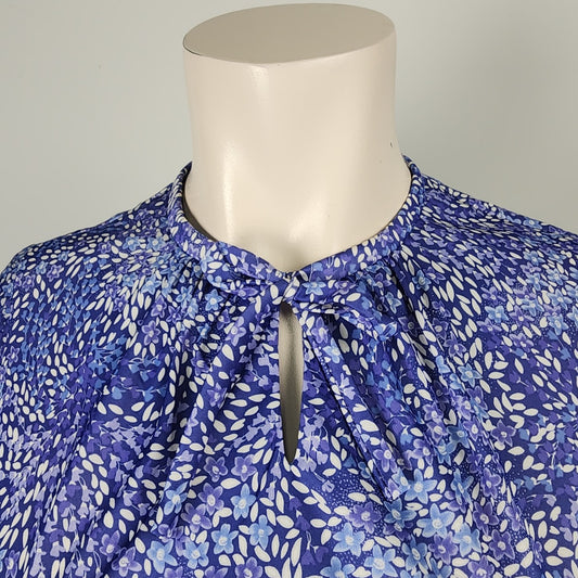 Vintage Decorum Irving Korny Blue Floral Belted Long Sleeve Dress Size XL
