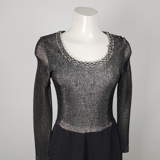 Vintage Daymor Couture Black & Silver Wool Fringe Hem Dress Size S