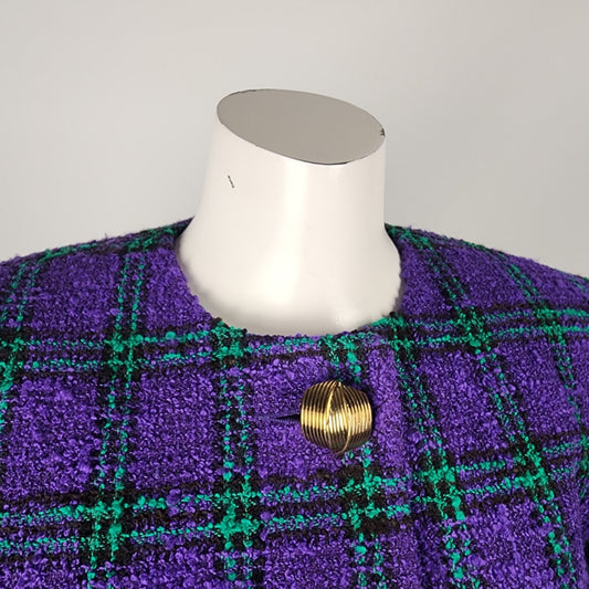 Vintage D'Oraz Purple Plaid Tweed Button Up Long Jacket Size 8