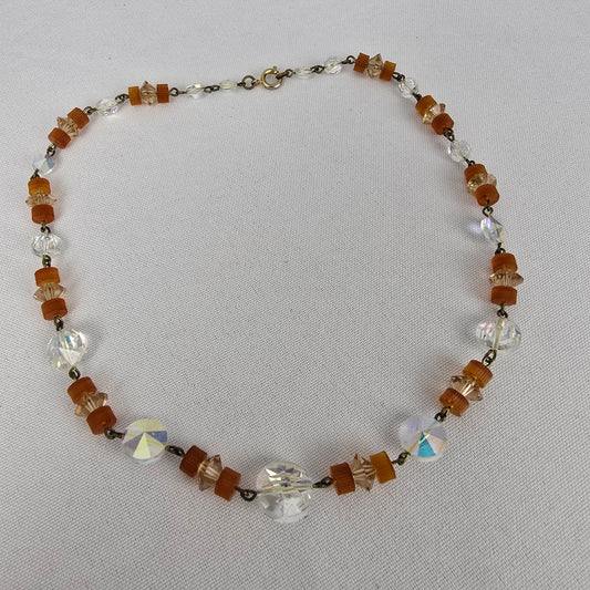 Vintage Cut Crystal Topaz Beaded Collar Necklace