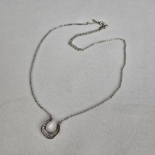 Avon Silver Tone Crystal Horse Shoe Pendant Chain Necklace