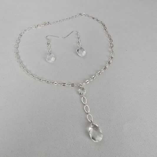 Avon Silver Tone Crystal Drop Necklace & Earrings