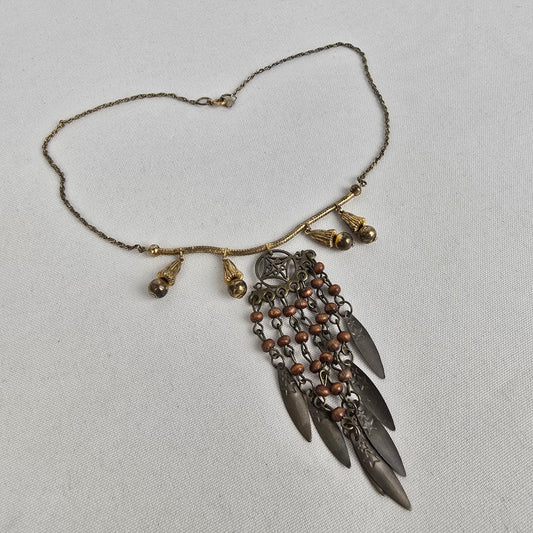 Vintage Reworked Gold Tone Fringe Pendant Necklace