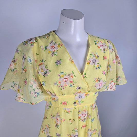 Vintage Ronda Roy Empire Waist Yellow Floral Print Dress Size 7