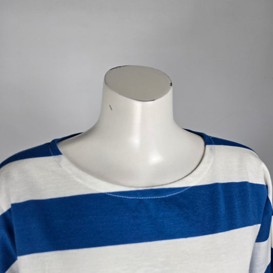 Vintage Sears Cotton Blue & White Stripped Long Sleeve T-shirt Size L