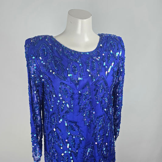 Vintage Scala Blue Sequined Beaded Evening Dress Size M