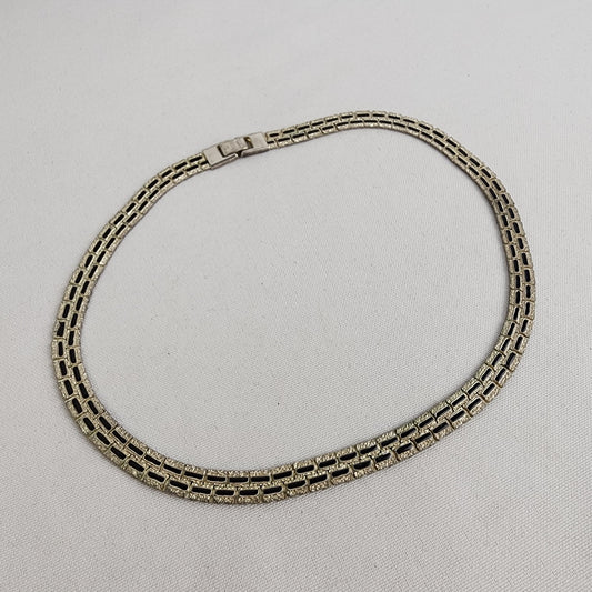 Vintage Silver Tone Black Enamel Collar Chain Necklace