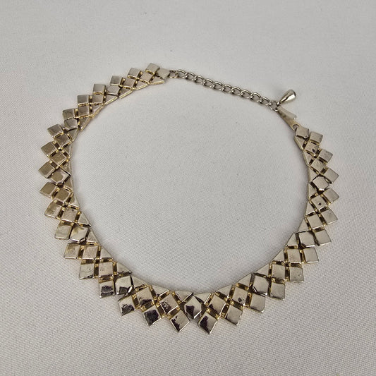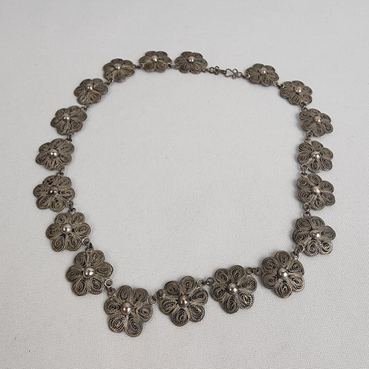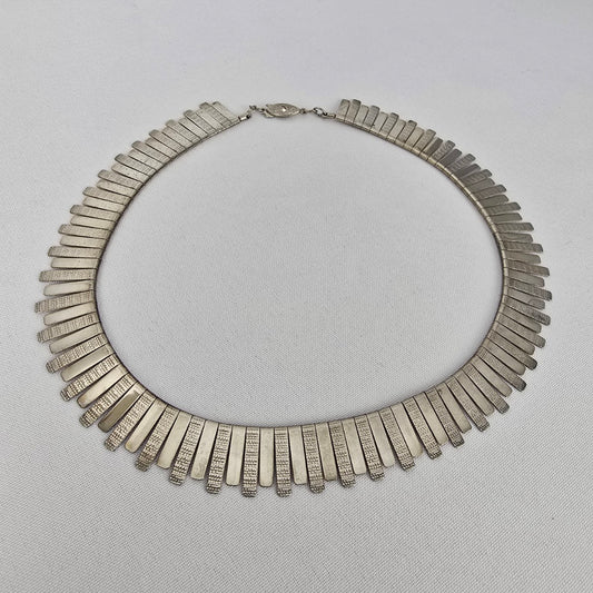 Vintage Silver Tone Collar Necklace & Screw Back Earrings Set