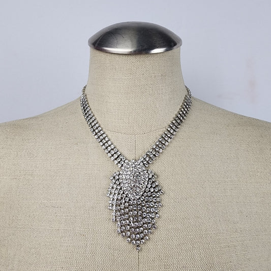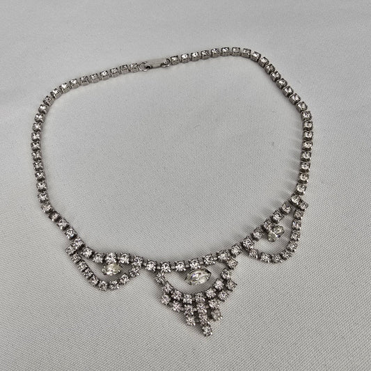 Vintage Silver Tone Bezel Set Crystal Chandelier Necklace