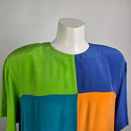 Vintage Sunny Leigh Color Block Silk Blouse Size L