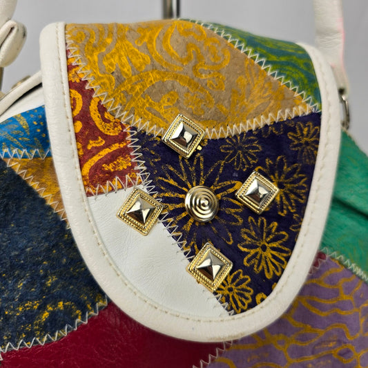 Vintage Suede & Leather Patchwork Top Handle Purse