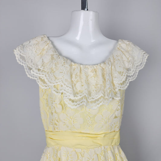 Vintage Yellow Lace Event Maxi Dress Size XS