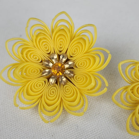 Vintage Yellow Celluloid Floral Clip On Earrings