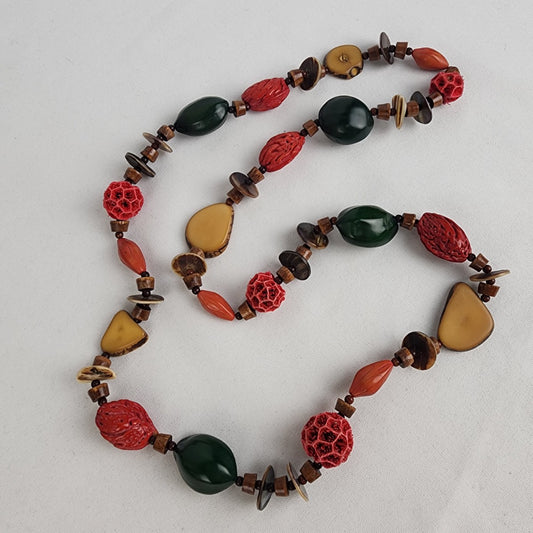 Vintage Wood Nut Coral Schell Colorful Bead Necklace