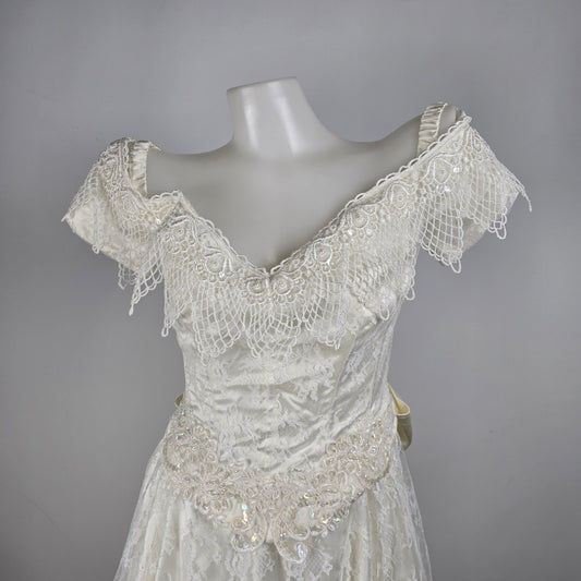 Vintage White Lace Off The Shoulder Wedding Gown Size 5/6