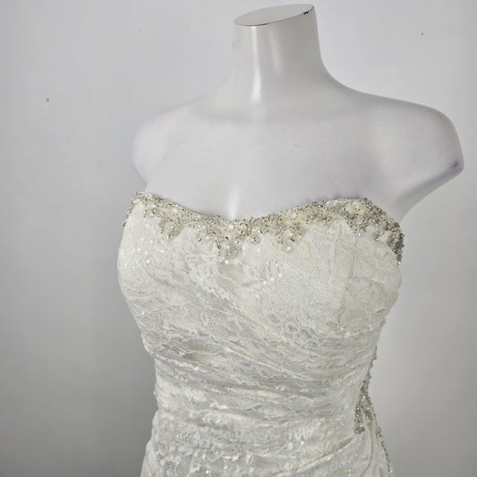 White Lace Beaded Corset Back Wedding Gown Size M/L