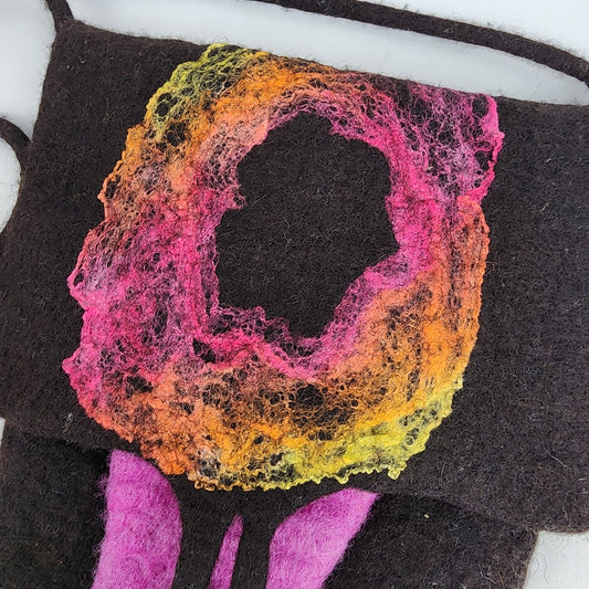 Wool Mine Design Felt Wool Black & Pink Horn Shape Cross Body Purse