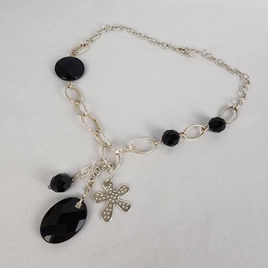Yaya Black Lace Eyelet Detail Button Up Top Size L
