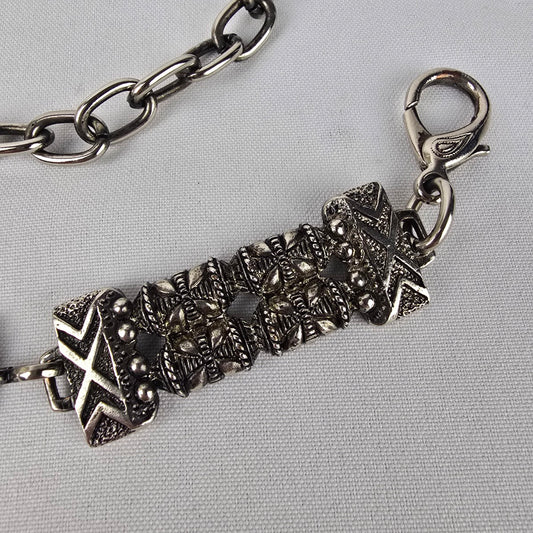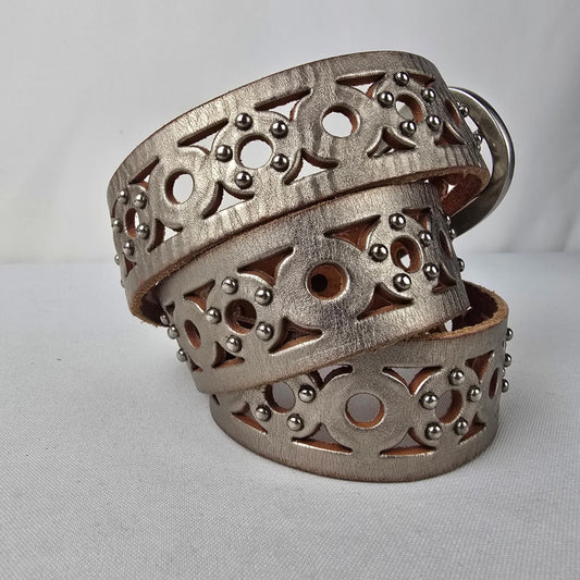 Fossil Silver Leather Cut-out Studded Belt Size M/L