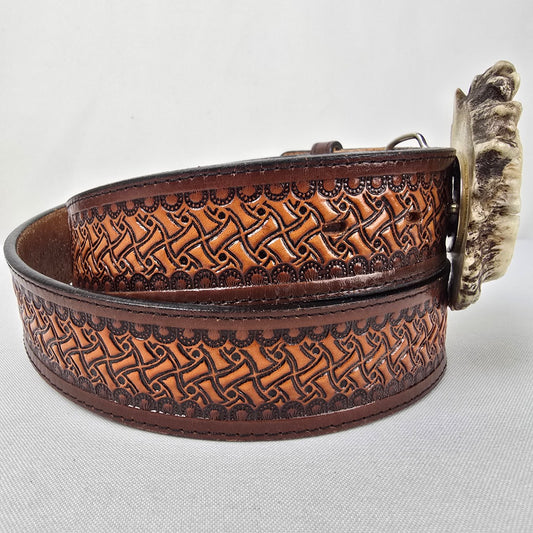 Vintage Carved Antler Big Horn Sheep Western Belt Size 36