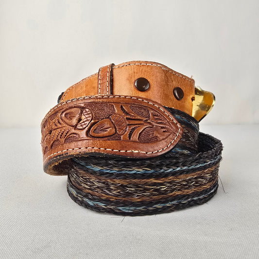 Montana Silversmiths Brown Leather Horsehair Belt Size M/L