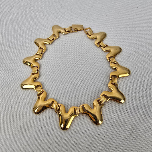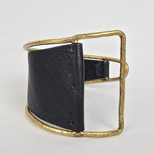 Gold Tone Black Leather Asymmetrical Cuff Bracelet