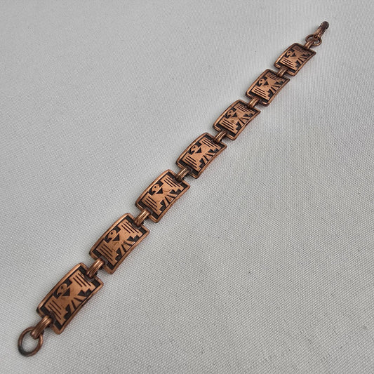 Vintage Taxco 925 Onyx Carved Silver Link Bracelet